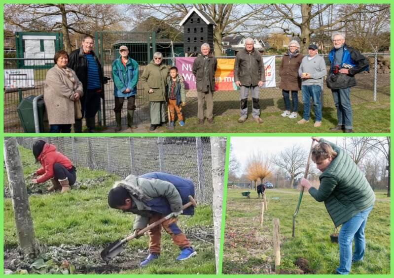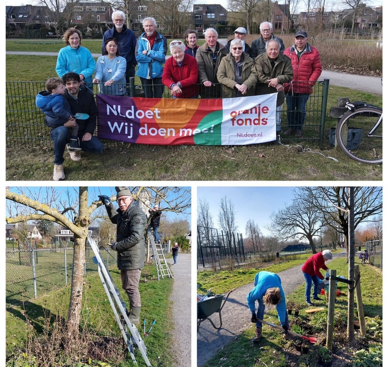 Dankzij een goede samenwerking met de Gemeente werd op 11 maart de kanaalstrook langs het fietspad tussen de Driestroom en het bos van Over-Holland de grond gefreesd. Hierdoor kon de strook op 12 maart door vrijwilligers ingezaaid worden met zaad voor wilde bloemen zodat van de zomer een fleurig bloemenlint kan ontstaan. De NL DOET zaterdag begon met een kop koffie en een stroopwafel voor de vrijwilligers in het Jeugdhonk aan de parkeerplaats aan de Straatweg. Daarna werd er hard gewerkt aan de boomspiegels langs de dierenweide. In de dierenweide werd de Bijenboom die helaas was doodgegaan vervangen door een lijsterbes die ook goed is voor de bijen en de vlinders. Om de bloemen/bijenlinten er wat vriendelijker in de winter uit te laten zien werden ter markering op de hoeken Cornus struiken geplant en werden de ontsierende houten paaltjes die grotendeels al verrot waren verwijderd. Rond twaalf uur werden de klussen beëindigd met nog een bak koffie en een saucijzenbroodje. Dankzij de inzet van verschillende vrijwilligers werd de NL DOET dag voor Breukelen Noord weer een succes en wordt de wijk weer een stukje fijner en plezieriger om in te wonen. Vrijwilligers bedankt en tot volgend jaar!