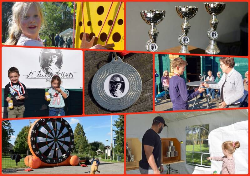 Het was gezellig druk en iedereen vermaakte zich opperbest met het Rad van Avontuur, blikken gooien en hoefijzers en ringen werpen. Ook sjoelen en trekbiljart ontbraken niet. Een belangrijke rol was weggelegd voor Scouting Niftarlake die de spelletjes uitlegde en op een leuke manier begeleidde. Alle punten werden op je scorebriefje genoteerd dat je na afloop moest inleveren. De deelnemertjes verlieten het park met blije gezichten, want iedereen kreeg een mooie Dudok de Witmedaille, een flesje drinken en een zakje chips.