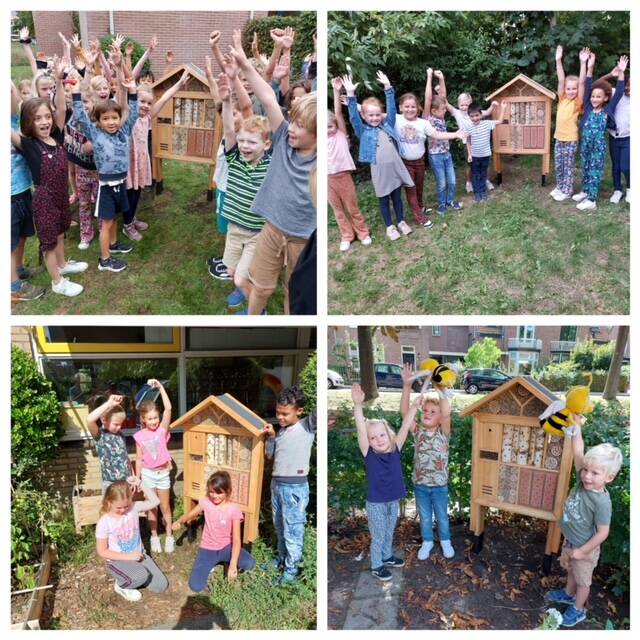 Dankzij een bijdrage van de Gemeente uit het Centraal Leefbaarheidsbudget heeft de Wijkcommissie de afgelopen maand insectenhotels kunnen plaatsen bij de basisscholen de Willibrordus, de Regenboog, de Schepershoek en de Bijenschans.