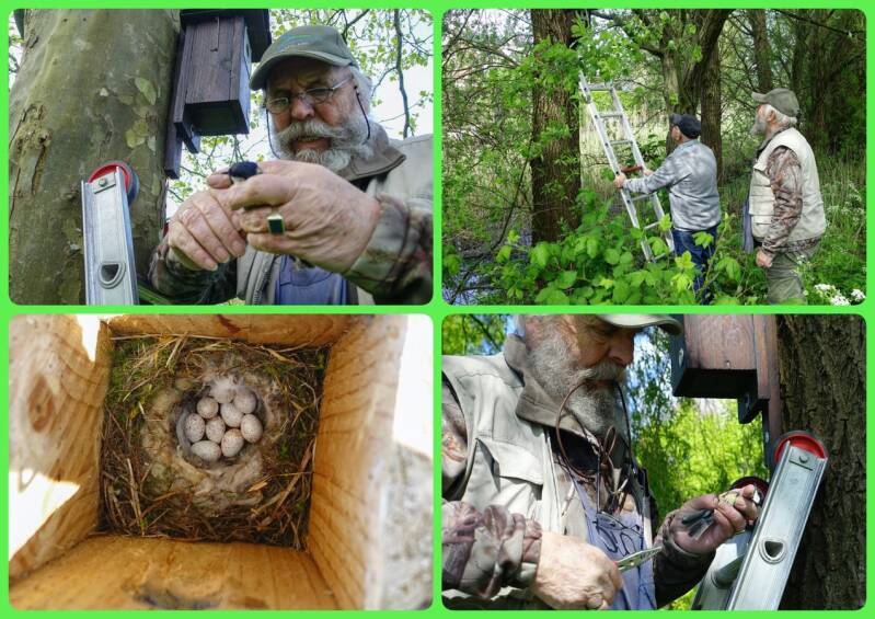 Zoals ieder voorjaar werden ook dit jaar in de afgelopen week de nestkasten in het Henk van der Griftpark gecontroleerd. Welke kastjes zijn bewoond en welke vogel heeft daar eieren gelegd? Hoeveel eitjes zijn er gelegd. Met groot enthousiasme ging ook dit jaar Engbert van Oort weer het trappetje op voor een inspectie van de nesten. Bjorn Bekooij zogde voor de onvermijdelijke registratie en Maarten Vervoorn fotografeerde alles weer voor ons. Bedankt mannen!