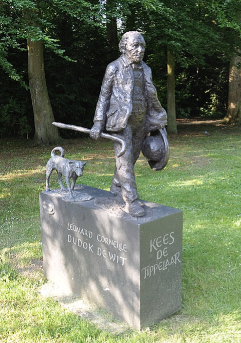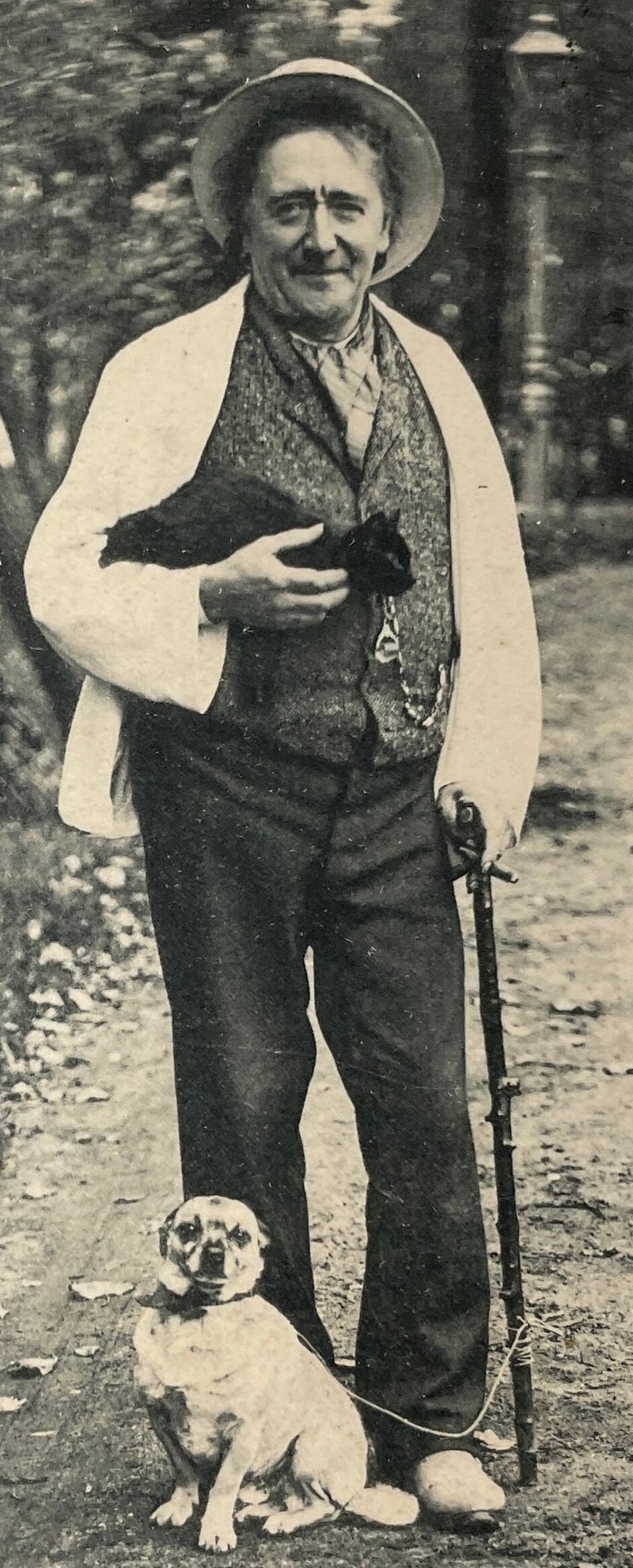 Op de foto: L.C. Dudok de Wit (met hondje Bebby), alias Kees de Tippelaar.