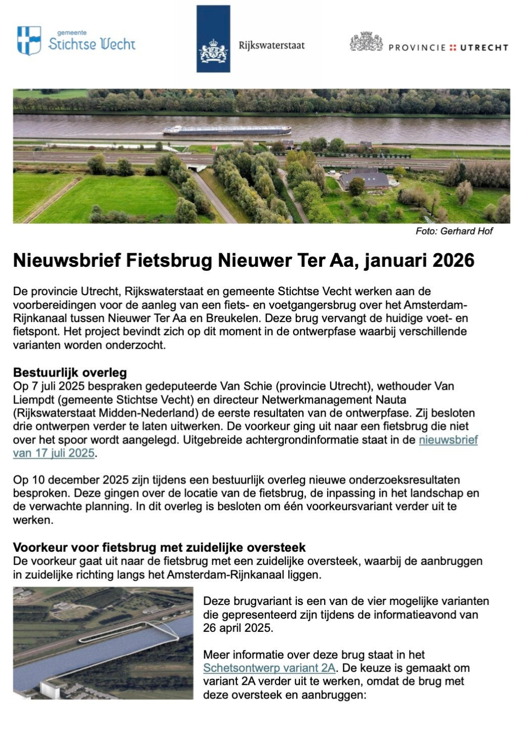 Stand van zaken Fietsbrug Nieuwer ter Aa